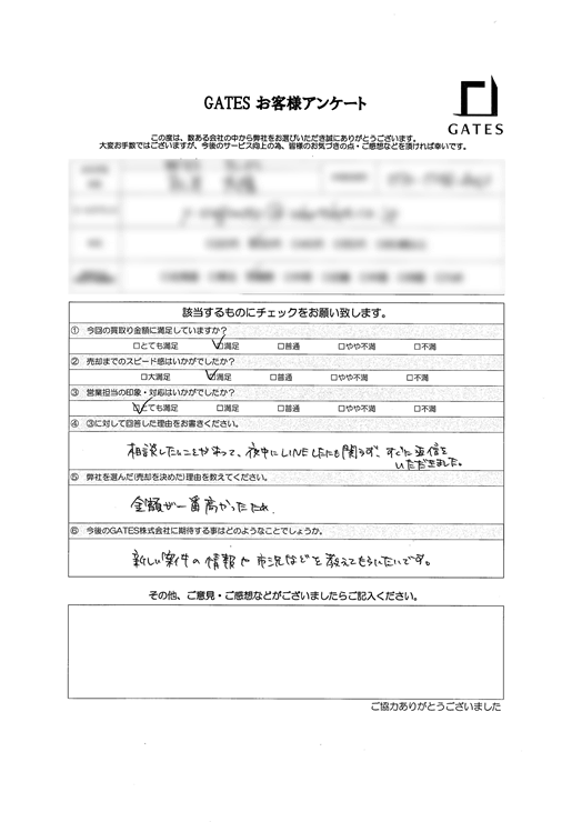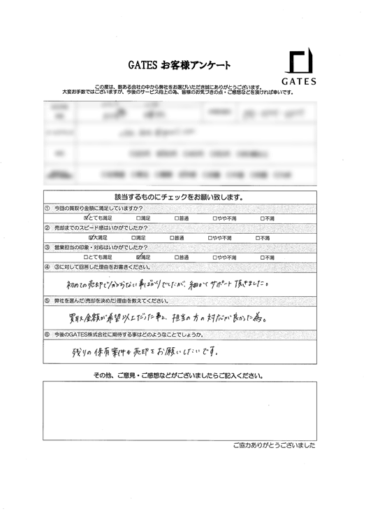 初めての売却で分からない事ばかりでしたが、細かくサポート頂きました。
